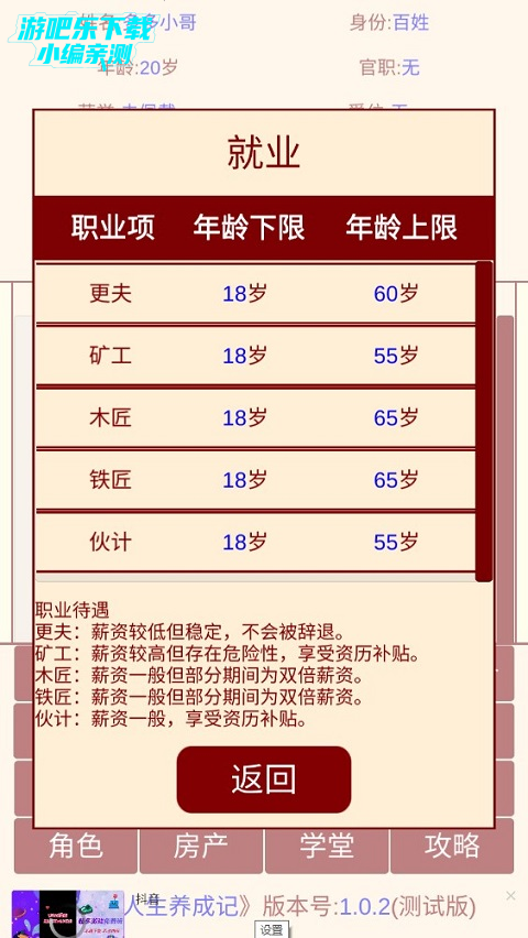 在清朝人生游戏中,职业选择是非常重要的。不同的职业会影响到你的生活、社交和金钱收入。如果你想玩好这个游戏,那么你需要选择一个适合自己的职业。比如,如果你喜欢生产和商业,那么你可以选择成为一个商人或者手工业者;如果你喜欢军事和政治,那么你可以选择成为一个将军或者官员。