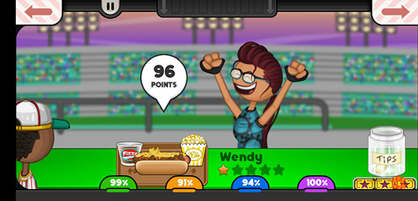 老爹热狗店是一款全新的控制设计的多任务游戏,玩家将在热狗店中扮演老板,通过完成各种任务来满足客户的需求,并赚取积分和升级。游戏提供了四个不同的站点,包括订餐站、烧烤站、建立站和弹出站,每个站点都有不同的操作方式和任务内容。