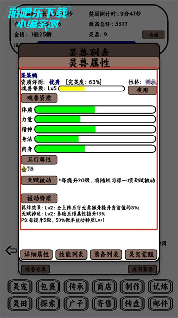 选中灵宠点击查看,可以看到灵宠的属性和资质等