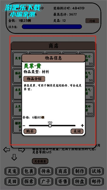 点击商店,可以购买自己需求的物品,比如灵草、材料等