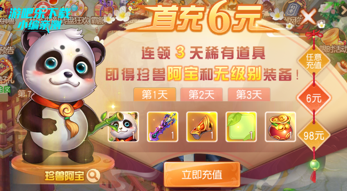 1,首充福利,首冲0.06元就可以获得稀世宝宝阿宝!