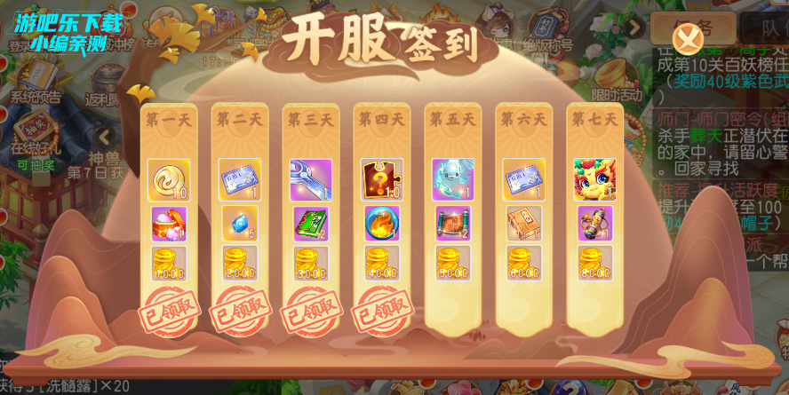 2,开服签到领取飞剑羽翼,更有神兽灼炽焰龙可以领取!