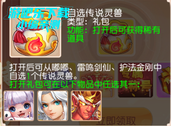 3、创角就送极品传说灵兽自选,顶级宠物随心选。