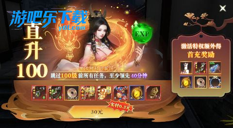 升级有礼中包含海量元宝、铜币,还可获得时尚外显,累充可提前获得珍稀外形,即送八大豪礼!