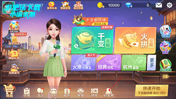 1、下载安装好边锋杭州麻将,进入游戏主界面,点击下方的好友房,如图所示。