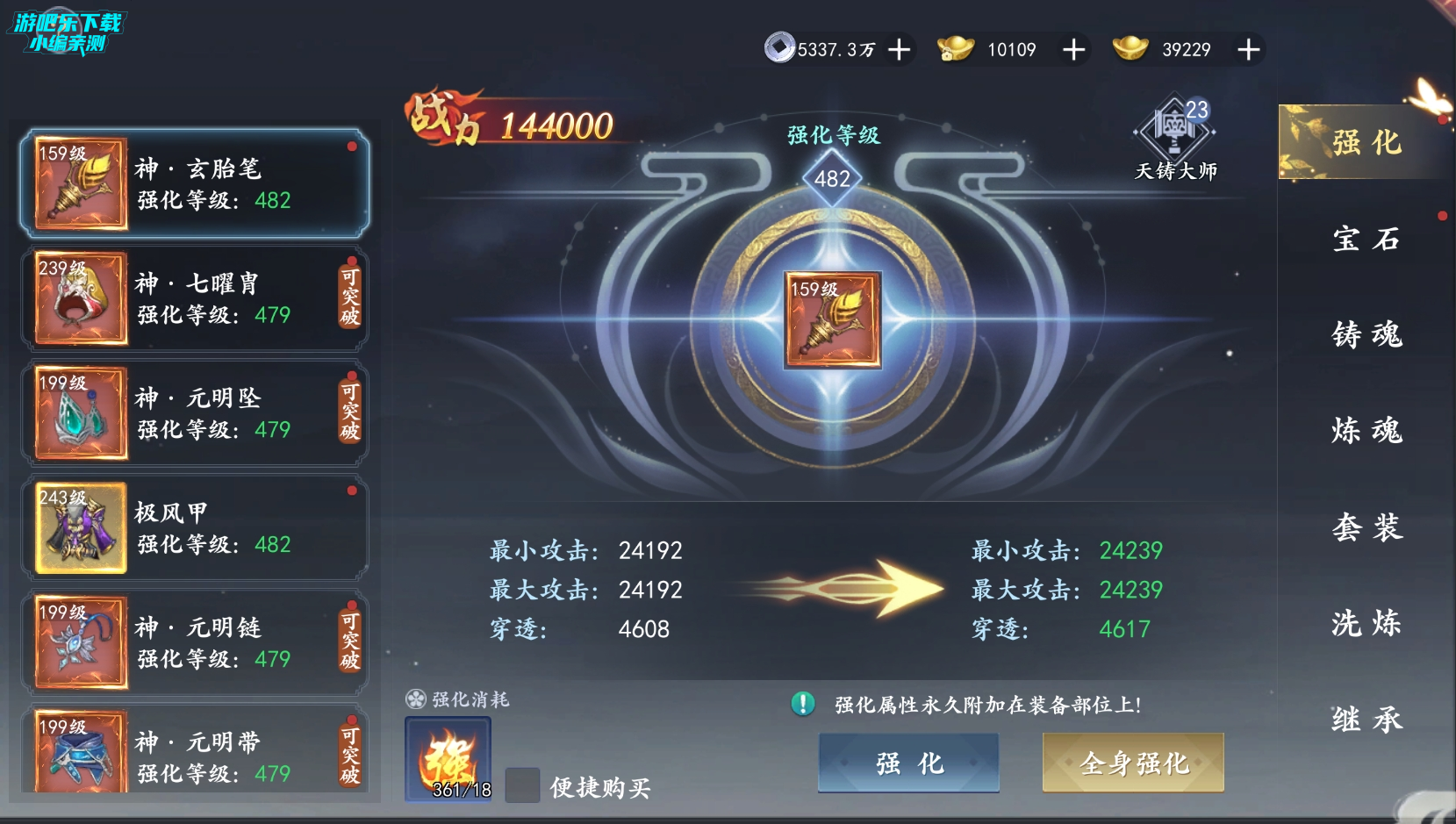小技巧:前期别盲目“一键强化”,可以优先强化与洗练解锁相关部位,这样能比别人更快拉开战力差距!(欧皇请随意~)