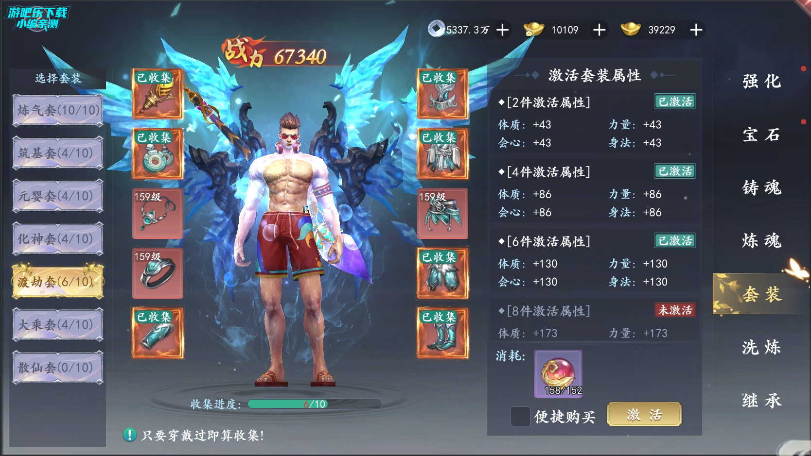 套装收集不仅能激活额外属性,还能进行培养强化。