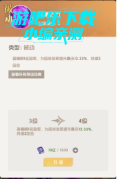 2)优先提升主动技能(终极技),其次被动技能(一些战斗机制,增加团队收益)