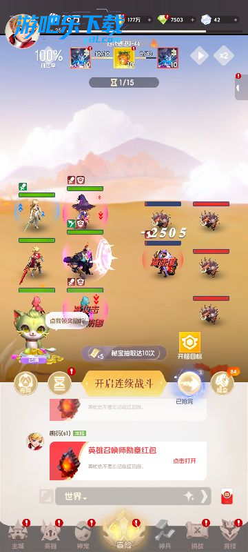 2)前期只管推关,即可获得大量魔法果实,达成对应条件,就能不断提升神宠,战力飙升