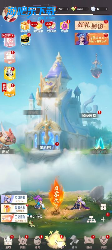 1. 星辰神约中抽取英雄,能够获得大量升星石以及升星必备的ss神魂和sss神魂。