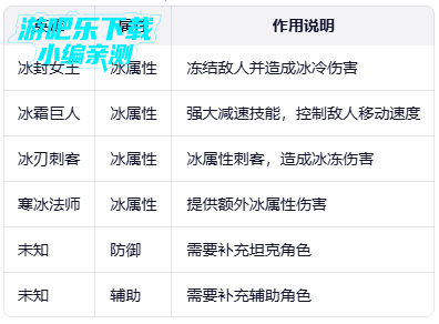 阵容特点:以冰属性英雄为主的阵容,以冰冷伤害和减速效果为特点,适合控制敌人并为队伍争取战机。