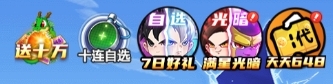 闯关升级送好礼,达到特定等级可累计领取十万元直冲卡。更有十连自选活动参与,助力前期完善强力阵容。