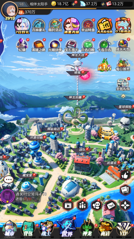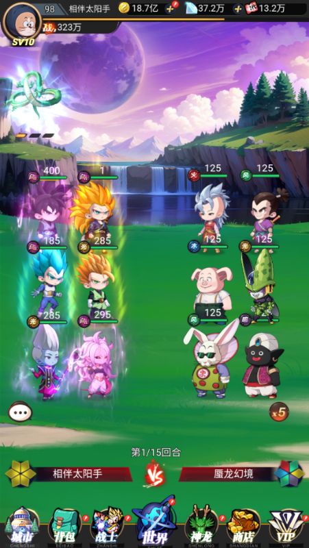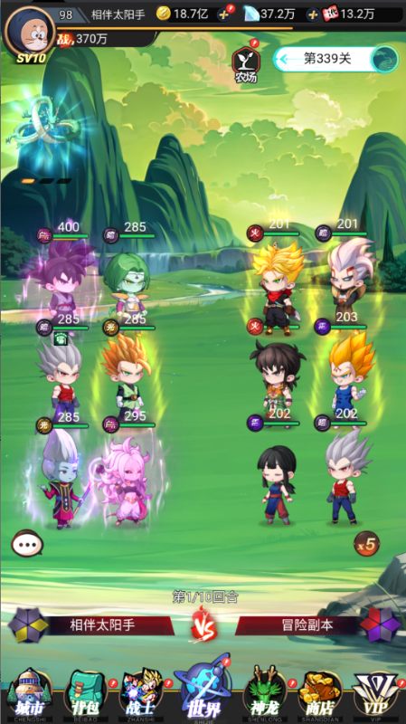 支持跨服实时对战,玩家需策略排布前排肉盾(如弗利萨)、后排输出(如超赛悟空)的九宫格阵型,通过 “拳拳到肉” 的技能碰撞争夺段位奖励。此外每日可参与 “魔界探险” 副本,挑战戈麻大魔王等 BOSS 获取养成资源。