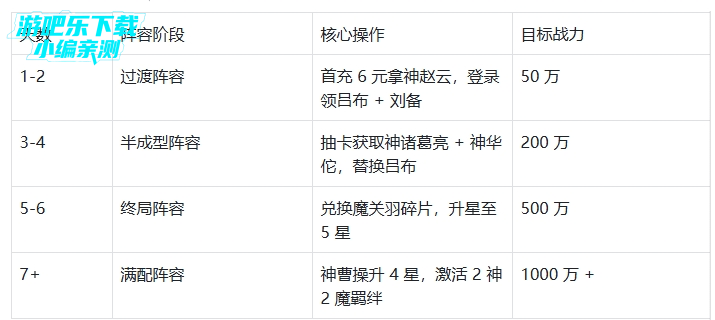 跳过过渡直接终局:放弃 R/SR 卡过渡,优先抽取并养成 SSR / 神魔级武将