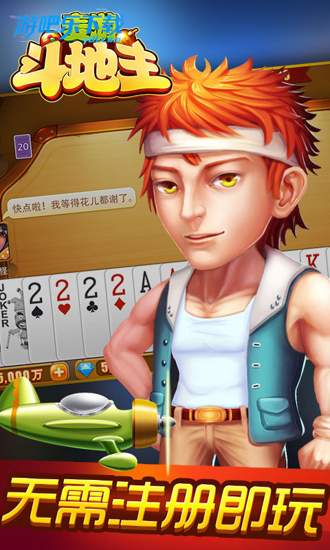 - 无需注册就能免费下载畅玩,这一点就足以吸引大部分玩家。游戏界面简洁明了,没有花里胡哨的东西,一进去就能专注于斗地主本身的乐趣。经典牌型和出牌规则与线下无异,无论是老玩家还是新手都能迅速上手,真正实现了随时随地想玩就玩。