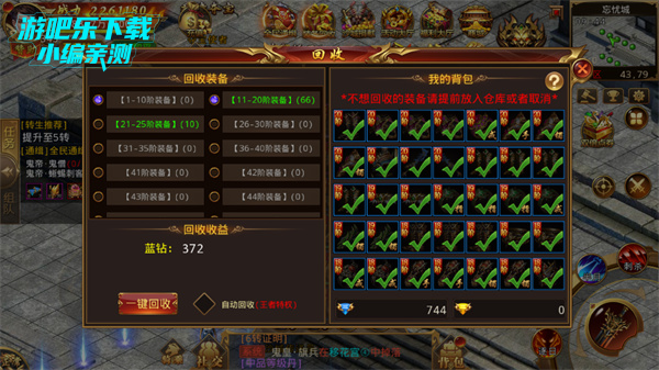 打怪、回收都可获得海量元宝,本服元宝全部靠打为游戏内核心消耗货币!
