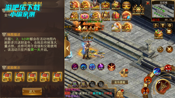 开服前3小时内,大量的财富之牛将出现在活动地图上,您可以通过击败它们来获取大量点券。