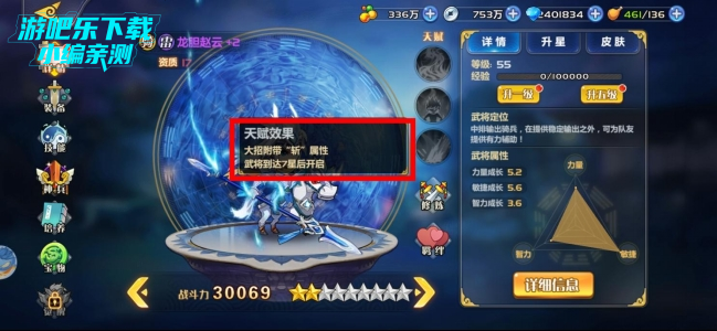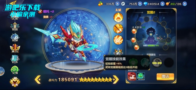 觉醒是要在你武将满星以后才会开启的,这边和升星的时候一样,提升武将整体的基础属性,觉醒分三个阶段每个阶段一个技能,技能可以升级,第一个是生命,第二个伤害加成,第三个是初始能量,后期打巅峰竞技很多时候抢不过一速,差的一点就差在这里,这个培养成本相对来说比较高,大家根据自身氪度选择要不要拉觉醒,一般只拉主c和主要辅助的觉醒
