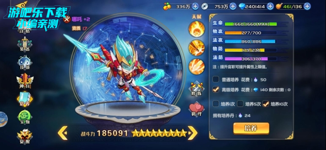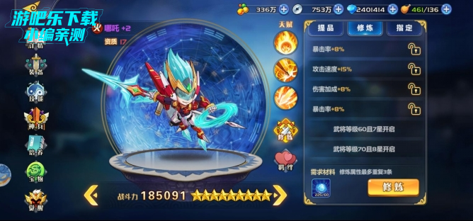 哪吒:火属性输出武将,会随着攻击次数的增加提升伤害,自身有较高的闪避率和很强的控制能力,配合孙策打风火连击伤害爆炸