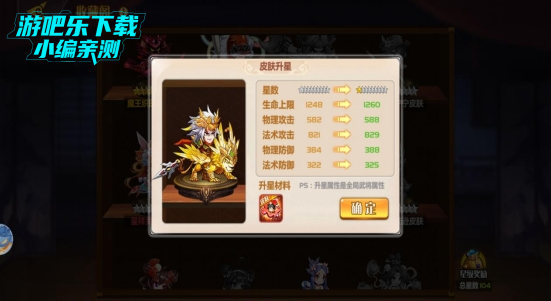 消耗碎片可以给武将升星,满星为9星,每升一星都会提升武将的一系列基础数值5,6,7星可解锁天赋,7星为武将的关键天赋,建议优先升7星提升很大,升星顺序为主c输出武将例如哪吒/关羽,其次大招效果重要的辅助武将例如武田信玄/孙策,最后是一些大招效果没那么重要主要靠被动技能的武将或者大招7星加成不重要的武将例如吕蒙/水镜先生