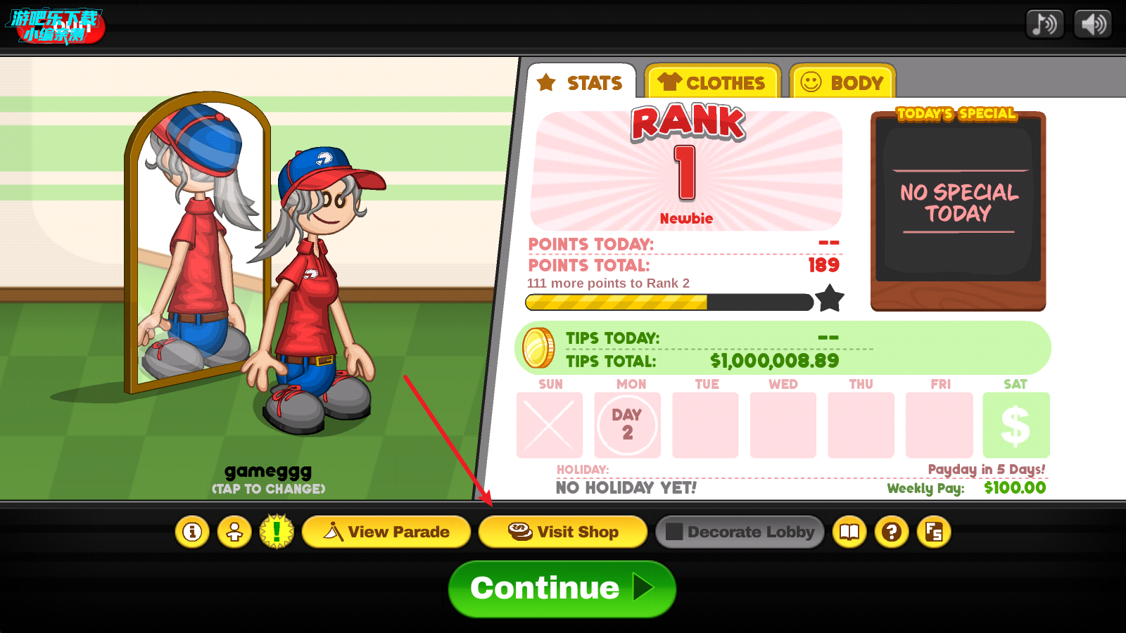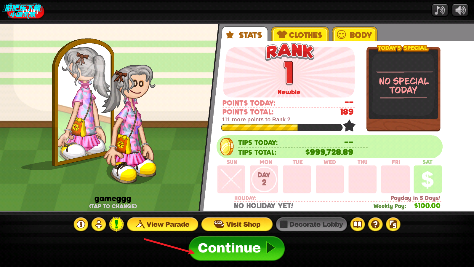 5、打扮好之后点击下方的CONTINUE即可继续游戏。