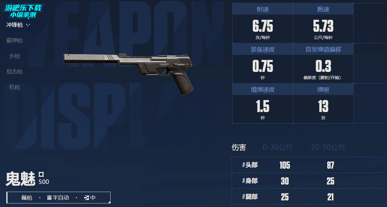 鬼魅(500):中距离一枪爆头秒杀无甲敌人。