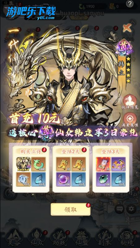 ★助战:大侠修炼怎么少得了强大的帮手,在助战里可以获得强大的功法、神兽、法器等帮助,帮大侠早日得道飞升,成就道祖霸业!