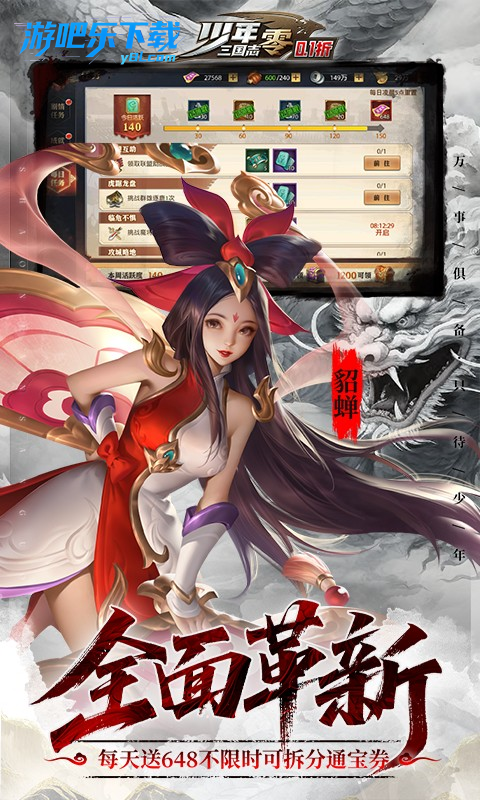 萌新还可以通过开服活动真龙试炼获得道具新亭印,玩家开启晋升台功能后可以通过晋升台将16资质的张飞晋升为18资质红将张飞。