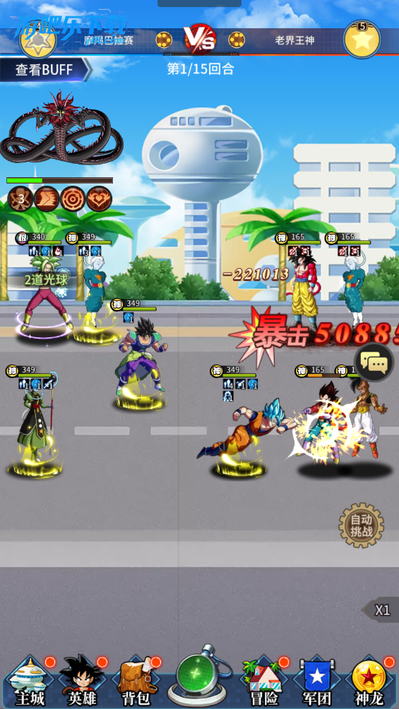注意技能组合:大部分英雄的技能是可以相互配合的。例如孙悟天给敌方附加重伤状态,而天津饭的[气功炮]则必定对重伤英雄造成暴击伤害。还有更多厉害的组合等你去发掘。
