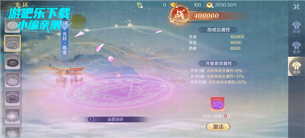 激活光环可以提升玩家的生命、攻击、防御数值。