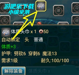 4、我们就可以在角色的属性栏里看到已经装好的道具,并获得了装备提供的属性,提升了英雄的实力。