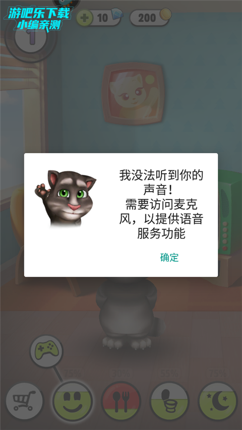 (6)对着汤姆猫说话,他会把一只手立在耳边听你说话,当他把手放下的时候,就开始复述你刚才对他说的话哦。(ps:声音是汤姆猫独特的小细嗓哦。)