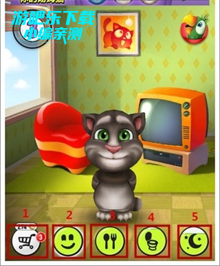 点击这个按键会带汤姆猫到客厅,在这你可以和他互动起来还可以和他一起玩游戏。