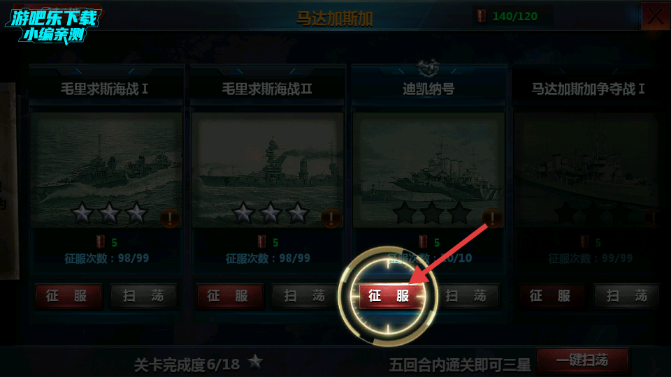 3、选择你需要征服的战斗群,点击征服开始战斗。
