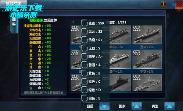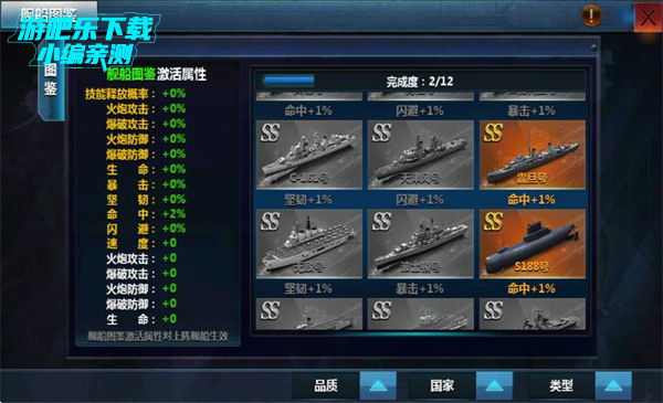 1、首次获得某艘舰船的图纸可以激活该舰船的图鉴,同时会获得一定的属性加成