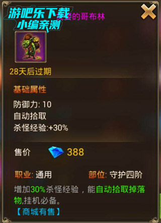 3、获得贪婪的哥布林也是如此,它能够提升人物杀怪经验的30%,最好能够在它存在的时间段内,把主线任务做完,如果够时间能够把恶魔深渊打完就更加好了。