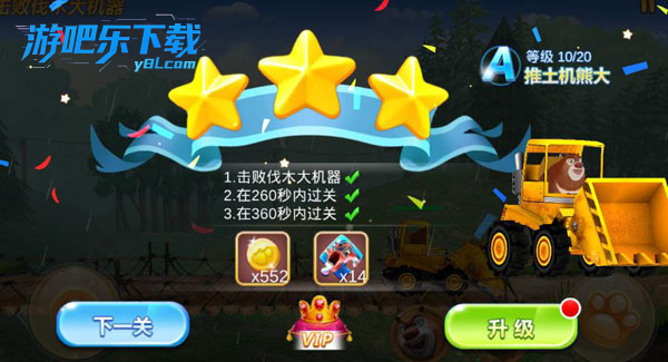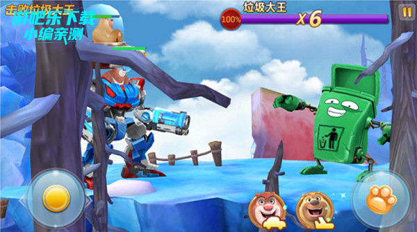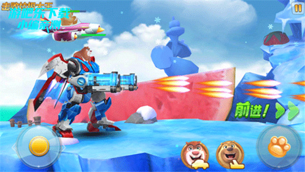 2、合体变身:合体玩法是熊出没之机甲熊大中的特色玩法,当小伙伴们使用合体变身后战斗力将会成倍的增长,合体变身后的技能也是非常给力的,但是值得注意的是合体变身只有最后三台机甲才能够进行合体变身。