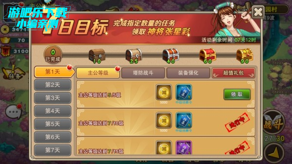 4、7日目标,完成指定数量的任务领取神将张星彩