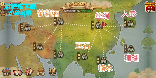 1、准备工作:每天保持活动范围在右半区,优先长安,琉球,高丽;花免费送的200元宝把马车升级一次到第十个格子,铜钱保持100w;