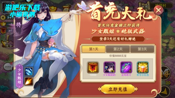 5、首充大礼包,充值任意金额立即获得少女甄姬和绝版武器