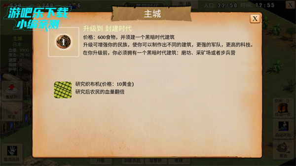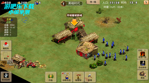 1、农民分配:开局优先建造民居保障人口,分配农民采集食物(农田/猎物)和黄金(矿场),避免资源短缺。