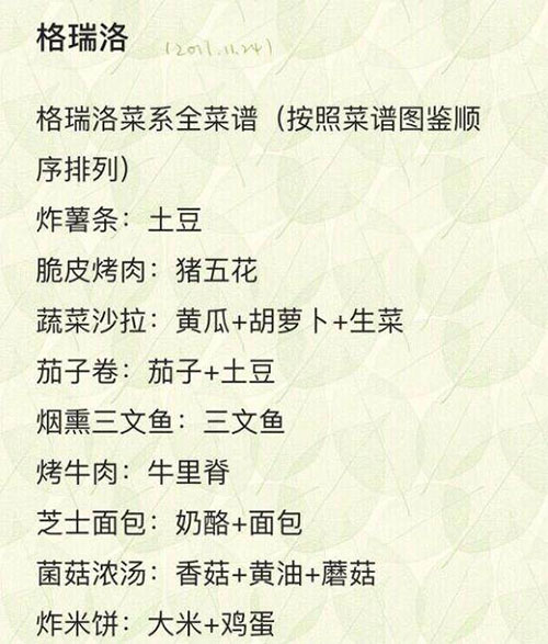 点开图标,就可以查看该菜系下的所有菜,未开发的为灰色。