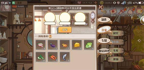 点“制作”,会出现已开发出来的菜的那个框,在上面有一个“放大镜”图标。