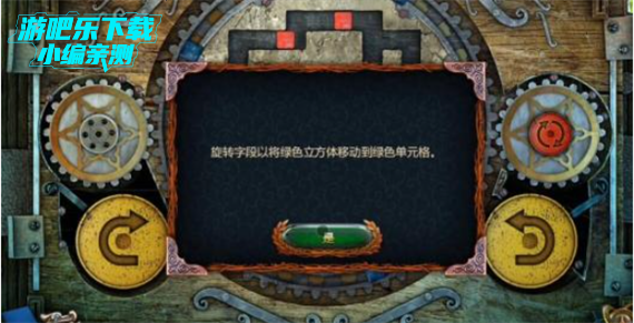 2、将按钮装上后,在门的机关处可开启转动绿色方块的游戏。