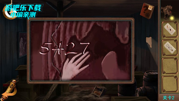 将残卷放回墙上,得到开锁密码,输入密码5427,打开得到钥匙,开门逃脱。