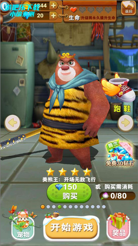 特色:游戏中的美熊王作为神奇熊王,他始终认为在熊的世界他是最漂亮的。他的特殊技能是在开场时会自动无敌飞行一次。
