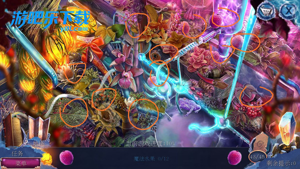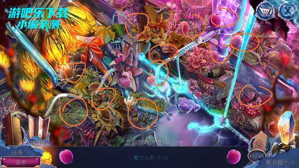 去果园,用坏了的镊子和导线开锁,得到氨水,回小屋,按配方制药,给神兽闻,开箱子,首先得到太阳标志,开锁,得到春天图片,弄成一半花一半树。