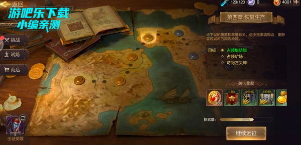 远征玩法中可在地图上拾取资源, 也可以在通关远征章节后获取章节奖励
