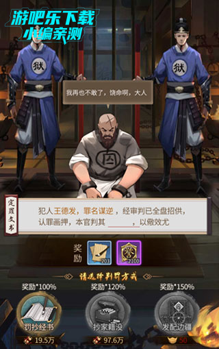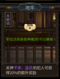 其实牢房也是有分不同类型的,有铁牢地牢天牢死牢,抓捕犯人的时候可得先想清楚这个人要关在哪里,有没有空位,像是有特定罪行的囚犯关押进特定的牢房里还可以获得更多的奖励。如需解锁牢房,也需要达成特定条件或者消耗相应资源。