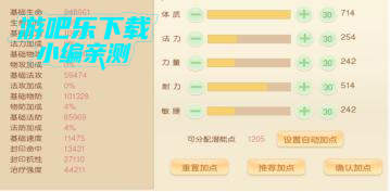 (加点系统)宝宝每升级一级可获得5属性点,可自由分配。